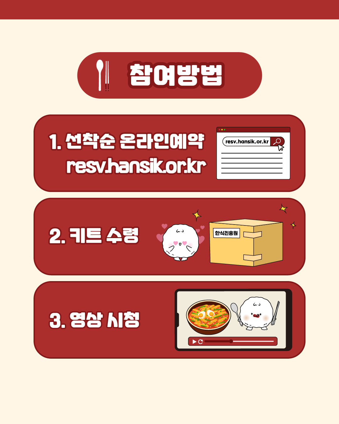 ① 이용자가 한식진흥원에서 요청하는 가입 신청 양식에 따라 개인정보를 기록하는 방식으로 신청합니다.