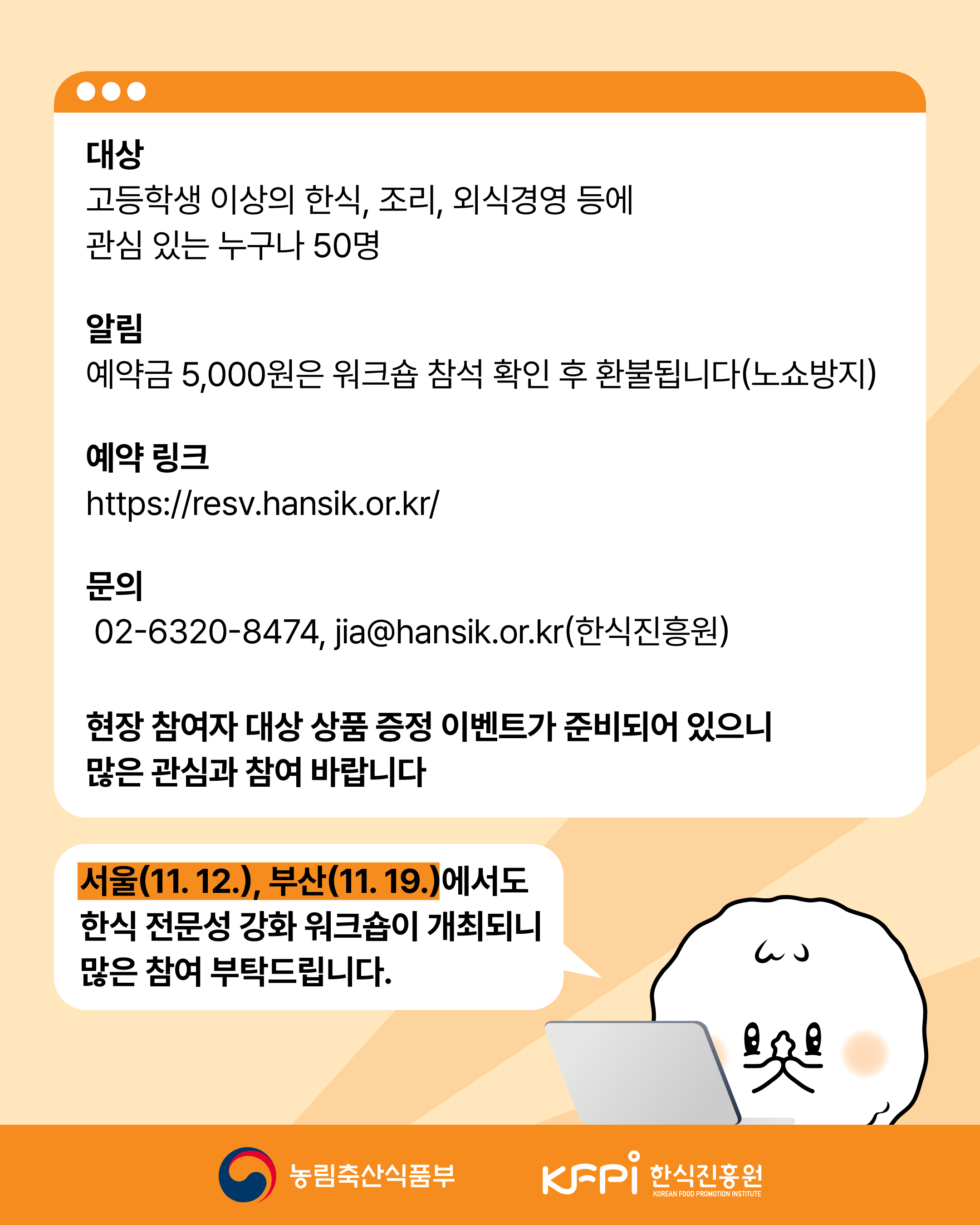 ③ 진흥원은 한식포털, 한식문화공간 페이지를 통합하여 운영합니다. 따라서 회원은 진흥원이 통합정책으로 운영하는 사이트에서 동일 아이디(ID)와 비밀번호로 로그인하여 이용하실 수 있습니다.